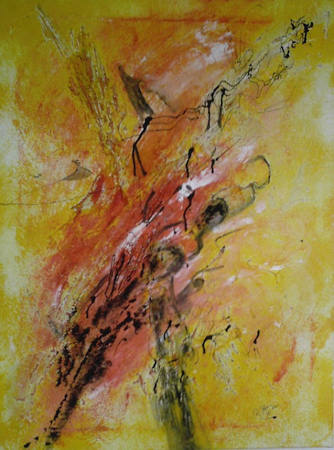 das schöne an solch einem offenen atelier ist, daß man - wenn man glück hat - einen weiteren überblick über die arbeit bekommt. rosi zeigte sowohl ältere als auch neue arbeiten, vom aquarell über acryl bis zur zeichnung. selbst unfertige arbeiten waren zu sehen. diese hier hat es mir besonders angetan: